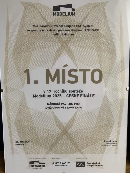 Ve čtvrtek 25.9. se v Ostravě konalo národní finále soutěže Modelium 2025, do kterého postoupilo 6 nejlepších z celkem 62 českých modelů. V letošním roce týmy vytvářely model z vlnité lepenky na téma Národní pavilon pro světovou výstavu Expo. Náš tříčlenný tým ze 2.B ve složení Nguyet An Nguyen Ngoc, Lucie Vlková, Patrik Hrebinec nejenže dokázal již v červnu do finále postoupit, ale za účasti Patrika Hrebince jako prezentujícího v Ostravě v českém finále zvítězil! Nyní náš tým čeká superfinále 30.10. opět v Ostravě, kde se nejlepší 4 české modely utkají s nejlepšími 4 modely slovenskými o absolutního vítěze. Gratulujeme a přejeme hodně štěstí v superfinále! 😉👍