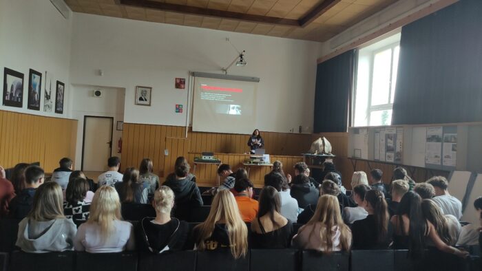 Násilí má mnoho tváří a může se týkat každého z nás. Nemusíme být přímo v roli oběti, ale i svědkem nebo osobou blízkou. Žáci prvních ročníků absolvovali besedu na téma domácí násilí, která se zaměřovala na prevenci, identifikaci a možnosti řešení tohoto problému. Lektorka, která besedu na toto téma vede již několik let, by sama nikdy nevěřila, že teorii a sdílené příběhy lidí, které poznala, bude časem doplňovat osobní zkušeností z pozice oběti. Obsah besedy silně rezonoval lektorčinou odvahou vystoupit i se svým osobním příběhem – na naší besedě to bylo poprvé. Moc děkujeme za návštěvu na naší škole a odvahu o tak intimní a bolestné zkušenosti mluvit a všem posluchačům přejeme, aby se s tématy tohoto charakteru setkávali pouze na besedách.