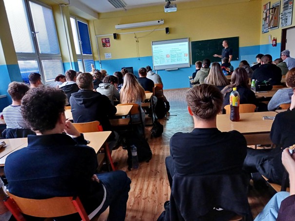Dne 5. 11. 2025 se konala odborná přednáška zaměřená na zdící systém Porotherm. Technický poradce firmy Wienerberger, pan Ing. Káder, seznámil žáky 3. ročníků stavebních oborů s přehledem sortimentu výrobků Porotherm, se zásadami pro navrhování a provádění keramického zděného systému Porotherm a jeho vhodného použití. Zaměřil se na tepelnou techniku, akustiku a statiku staveb. Na příkladech z praxe přiblížil žákům nejčastější chyby, se kterými se na stavbách pravidelně setkává. Žáci tak měli jedinečnou příležitost načerpat objektivní a aktuální technické informace od odborníka z oboru.