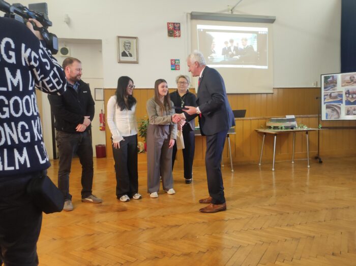 V sobotu 22.11.2025 se konal Den stavitelství spojený jako každý rok s Dnem otevřených dveří. Již tradičně byli Prof. Ing. Petrem Konvalinkou oceněni úspěšní žáci z minulého školního roku, příběh Synagogy v Žatci a celou rekonstrukci nám přiblížil Ing. D. Černý a co je možné zažít ve zrekonstruovaném Mederově domě v Žatci jsme se dozvěděli od Mgr. P. Antoniho. Následovala prezentace, která představila návrh pavilonu pro výstavu EXPO. An Nguyen, Lucie Vlková a Patrik Hrebinec s tímto modelem z vlnité lepenky zvítězili v mezinárodním superfinále soutěže MODELIUM 2025. Na závěr byly, za přítomnosti 1. náměstkyně hejtmana Ústeckého kraje Ing. Jindry Zalabákové, otevřeny zrekonstruované prostory odborných učeben.