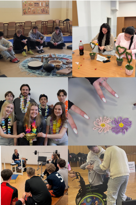 Náš Den malých radostí proběhl v úterý 10. února. Žáci si mohli dle vlastního uvážení obejít různá stanoviště, která nabízela aktivity různého typu – jóga (Energy Point – N. Beranová), muzikoterapie (R. Náhluková), sebeobrana (Tiger club Chomutov), zdravá výživa (Mgr. K. Meřínská), kreativní tvoření, kresba tužkou (V. Roubínková), autorské čtení s mladým regionálním básníkem J. Karasem, čtenářský koutek, společenské hry, sportovní aktivity (stolní tenis, futsal, florbal a test zdatnosti PČR), kyberbezpečnost s PČR atd. Součástí programu byla i možnost zhlédnout dokumentární film Horská dráha, který zachycuje problematiku hraniční poruchy osobnosti. Po filmovém představení následovala diskuse s režisérem a zároveň „hraničářem“ J. Motyčkou. K pestrosti programu přispěla i organizace PARENT PROJECT, z. s. (Ing. J. Reineltová) – pacientská organizace, kterou založili rodiče, jejichž děti se narodily se svalovou dystrofií Duchenne/Becker a dalšími vzácnými nervosvalovými onemocněními raného věku. Tým PARENT PROJECT seznámil žáky s tématem bezbariérovosti teoreticky i prakticky. V praktické části si dobrovolníci mohli zkusit pohyb na vozíčku po prostorách školy.
